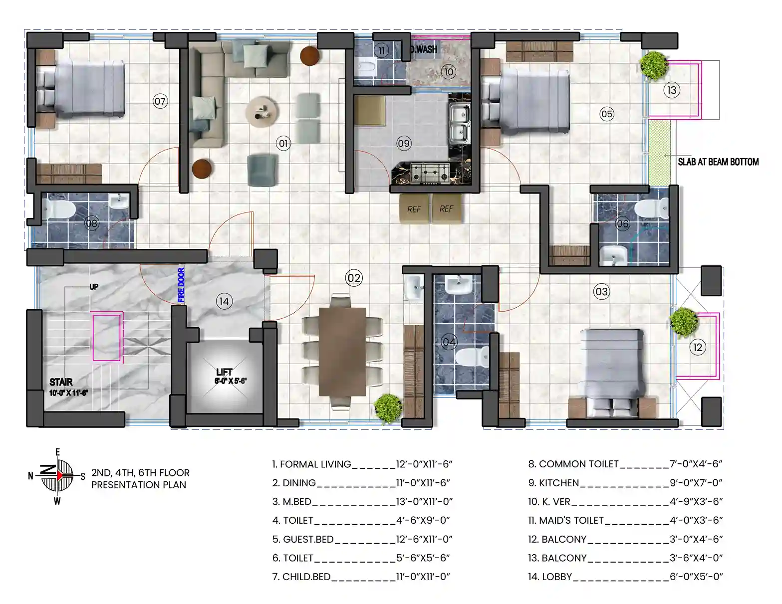 Discover SBDL Mohsin Mansion — where luxury meets convenience in the heart of Uttara. This exclusive G+7 residential apartment offers spacious, approximately 1500 sq. ft. single-unit-per-floor apartments, designed for privacy and comfort. Ideally located just steps from the Uttara North Metro Station, each south-facing unit features 3 bedrooms, 3 bathrooms, a modern kitchen with an attached servant toilet, separate living and dining areas, and 2 airy verandas. With amenities including community space, dedicated parking, and 24/7 surveillance, it offers refined urban living in a prime neighborhood. Secure your dream home today and experience a truly signature address in Uttara.